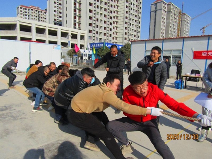 2020年12月31日,秦漢和苑項目部聯(lián)合西安國采、陸港·金海岸兩個兄弟項目在秦漢和苑項目生活區(qū)內(nèi)開展了“迎新年·慶元旦”文體活動。70余名項目部員工參加。