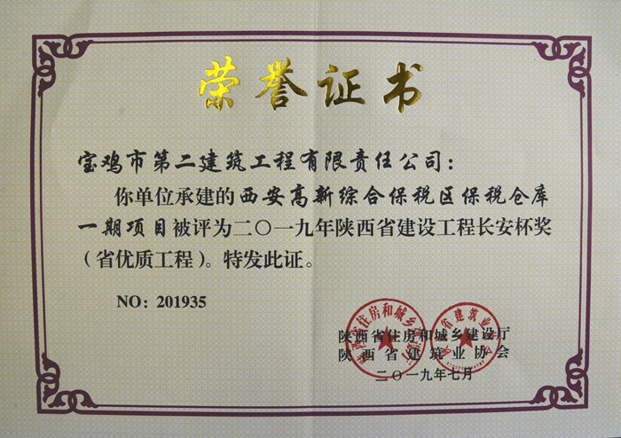 2019年陜西省建設工程長安杯獎(西安高新綜合保稅區(qū)保稅倉庫一期項目)